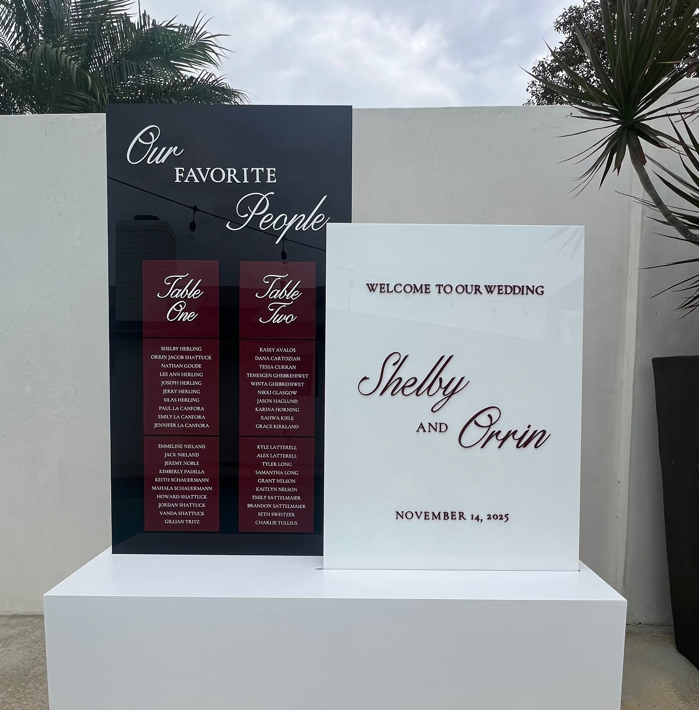 Our design-forward approach combines full-service concepting and ideation, fabrication, and day-of execution to create unforgettable, custom built, full-size signage installations that feel both elevated and deeply personal.