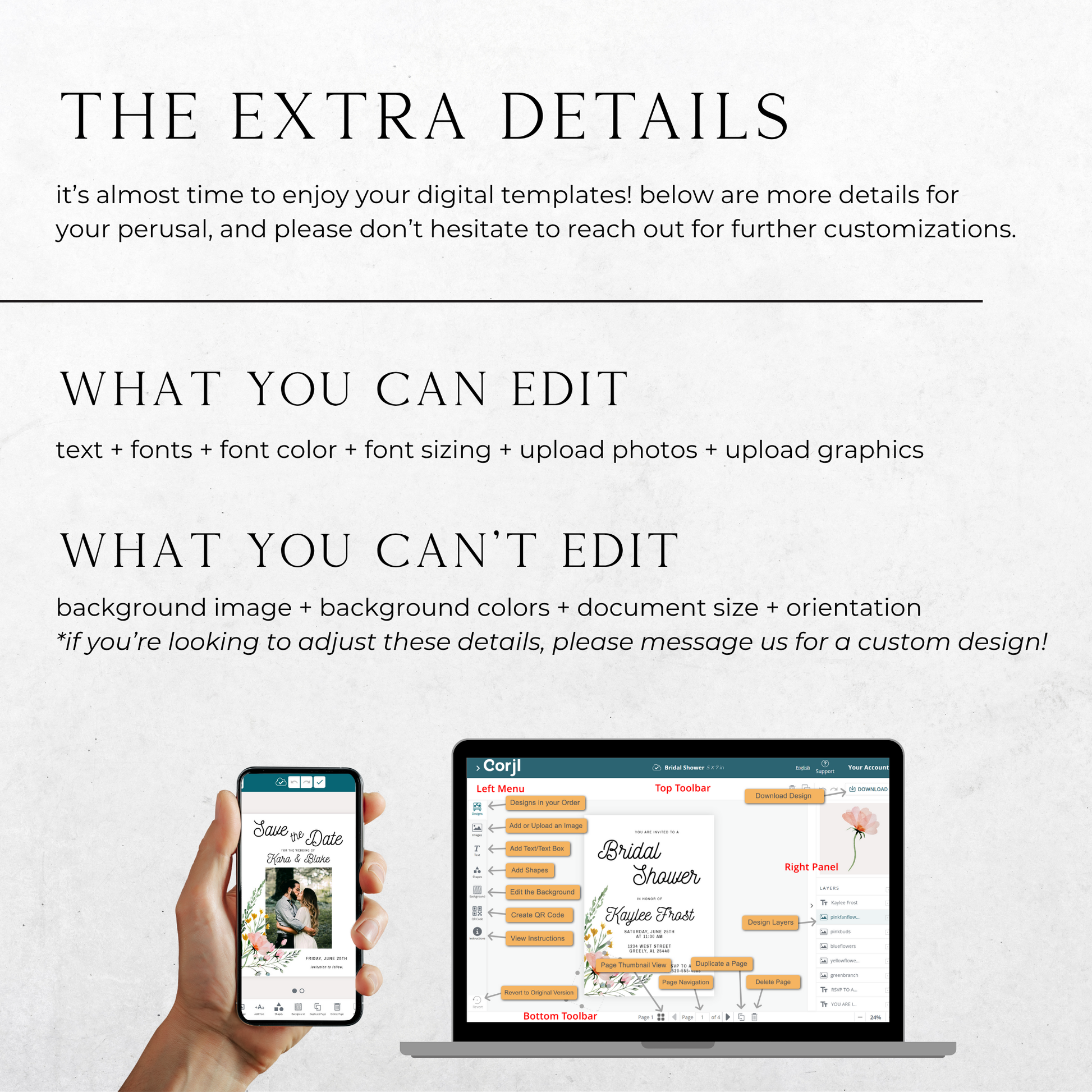 2. Customize Effortlessly — Edit text, fonts, and images to match your event aesthetic. Full step-by-step instructions and a quick user guide on how to use Corjl are included with your purchase.